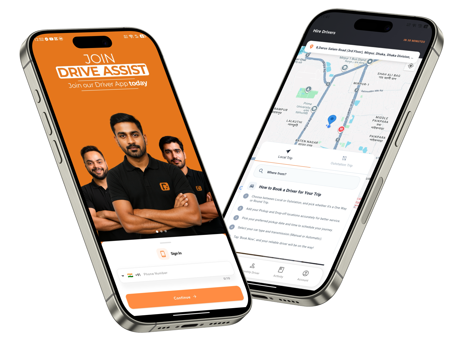 Hire professional drivers with Drive Assist for safe, stress-free outstation trips, day journeys, or adventures.